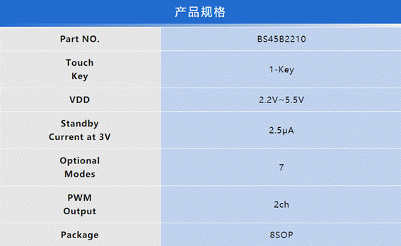 HOLTEK新推出BS45B2210 LED Lighting Touch IC