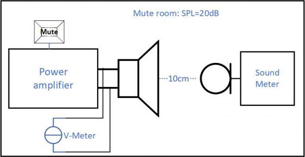 Figure 7 該平臺(tái)用于爆裂噪聲評(píng)估,V-Meter可以測(cè)量直流偏置電壓,Sound meter可以測(cè)量來(lái)自揚(yáng)聲器的爆裂噪聲的聲壓。靜音按鈕用于將功率放大器從靜音切換到取消靜音或從取消靜音切換到靜音,Sound meter的麥克風(fēng)傳感器與揚(yáng)聲器在同一條線上,Sound meter將測(cè)量揚(yáng)聲器的聲壓級(jí)。該平臺(tái)設(shè)置在靜音室中,然后分別進(jìn)行有預(yù)補(bǔ)償和無(wú)預(yù)補(bǔ)償?shù)臏y(cè)試,數(shù)據(jù)列在以下表格中。