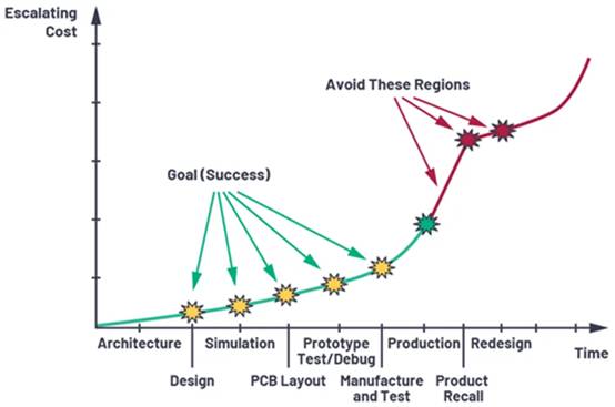 圖1. 生產(chǎn)的電路板出現(xiàn)問題時,成本可能急速上漲。