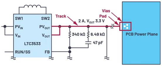 原理圖和模擬只是設計的第一步,之后是謹慎的器件定位和路由技術(shù)。過孔、電軌和載流能力都必須符合要求,并接受評估。如果接口位置存在開關噪聲,或者開關噪聲到達IC的功率引腳,那么系統(tǒng)電路會失常,且難以隔離并排除故障。 |