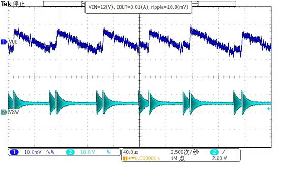 Vin=12V, Vout=5V, Iout=10mA 時 Ripple<19mV