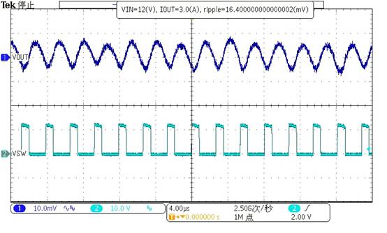 Vin=12V, Vout=5V, Iout=3A 時 Ripple<17mV Ripple<19mV