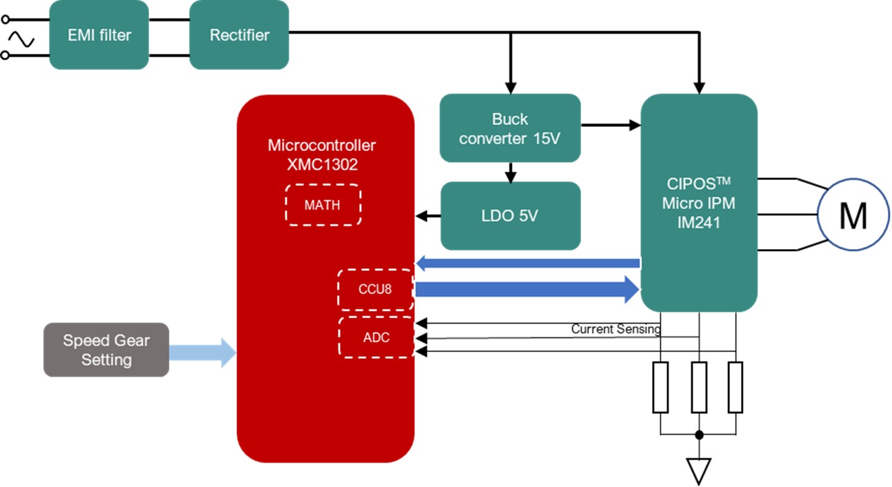 圖1 基于XMC1302的吊扇解決方案系統(tǒng)框圖
