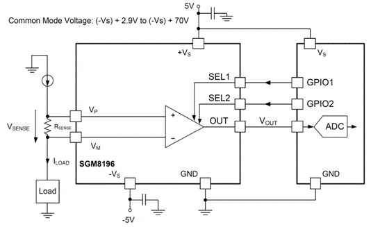 SGM8196 是一款專為高共模電壓應用而設計的電流檢測放大器,支持 2.7V 至 5.5V 的單電源工作電壓,也支持 -14.5V 至 5.5V 的雙電源工作電壓。它具備廣泛的共模電壓范圍,單電源模式下為 2.9V 至 70V,雙電源模式下為 (-VS) + 2.9V 至 (-VS) + 70V。該芯片旨在將高壓側(cè)分流電阻的差分電壓轉(zhuǎn)換為相對于參考地(GND)的輸出電壓。SGM8196 還可以耐受 -75V 至 75V 的輸入共模電壓,這為存在感性負載或線路存在寄生電感場景的電流檢測提供了更安全和更可靠的保障。SGM8196 提供單片四種不同的可調(diào)增益配置:20V/V、25V/V、50V/V 或 100V/V,可以通過 IO 靈活地在線配置四種不同增益,滿足大動態(tài)、低損耗、高精度的電流檢測需求。SGM8196 還具有高帶寬,快速響應,高 CMRR,低 VOS 等優(yōu)勢。此外,SGM8196 采用符合環(huán)保理念的 SOIC-8 和 TSSOP-8 綠色封裝,并在 -40℃ 至 +125℃ 的溫度范圍內(nèi)穩(wěn)定工作。