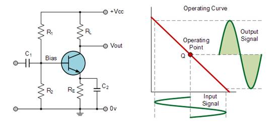 由于 A 類放大器工作在線性區(qū),因此應(yīng)正確選擇晶體管基極(或柵極)直流偏置電壓,以確保正確工作和低失真。然而,由于輸出設(shè)備始終處于“開啟”狀態(tài),因此它會(huì)不斷承載電流,這意味著放大器會(huì)持續(xù)損耗功率。