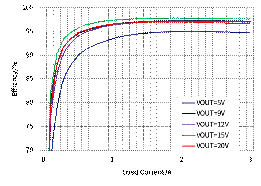 *測試條件:FPWM 模式,無展頻和線路損耗補償,FSW=420kHz,RSENSE=5mΩ