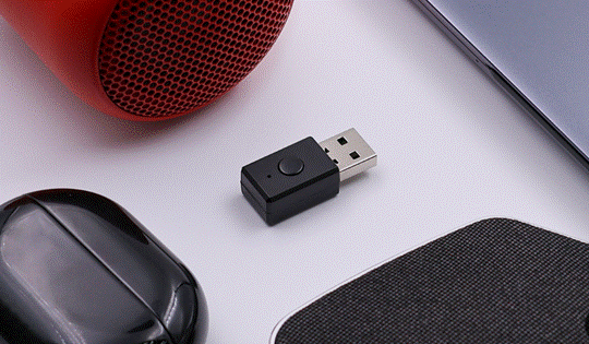 這款尺寸為 32.8 x 16.3 x 8.5 毫米的音頻發(fā)射器加密狗可提供簡單易用的即插即用操作。插入任何主機設備(如 Windows PC 或 MacOS 電腦、平板電腦或電視機)的 USB-A 端口后,可通過下拉菜單進行配置,其中包括一個按鈕,用于與一個或多個接收設備配對并進行音頻廣播。