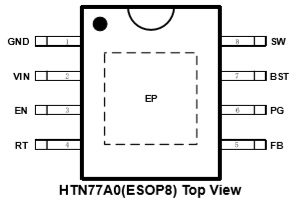 HTN77A0允許從高輸入電壓到低輸出電壓的功率轉(zhuǎn)換,開關(guān)MOS的最小導(dǎo)通時間為50ns。該器件提供3ms的固定軟啟動,以防止啟動過程中的涌入電流。HTN77A0具有外部環(huán)路補償功能,可靈活優(yōu)化環(huán)路穩(wěn)定性或環(huán)路響應(yīng)。 HTN77A0提供谷值電流限制、峰值電流限值、熱關(guān)斷保護和輸入電壓欠壓保護。該器件采用ESOP8封裝。