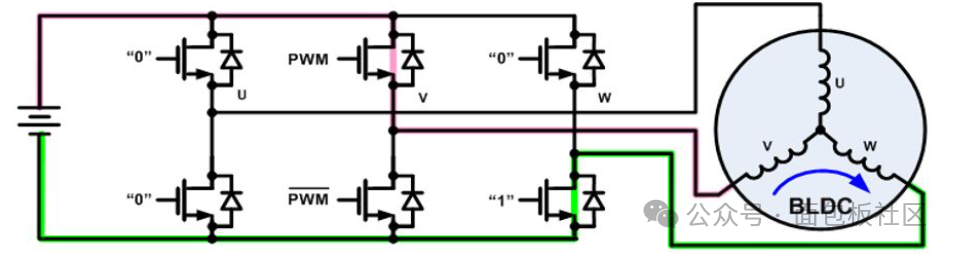 要驅(qū)動三相無刷電機,三相繞組每相需要在根據(jù)轉(zhuǎn)子位置狀態(tài),運行在高電位或低電位上。為此,通常采用三個“半橋”驅(qū)動電路來實現(xiàn)驅(qū)動,每個驅(qū)動電路都由兩個開關(guān)組成。根據(jù)所需的電壓和電流,開關(guān)可以是雙極型晶體管、IGBT或MOSFET。