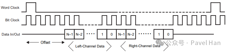 - • BCLK(Bit Clock):串行位時(shí)鐘線,用于控制數(shù)據(jù)的采樣速率。音頻數(shù)據(jù)在BCLK的上升沿或下降沿被采樣。