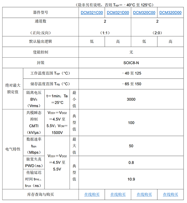 [1] 測試條件:VDD1=VDD2=4.5V至5.5V;VCM=1500V;Topr=–40°C至125°C