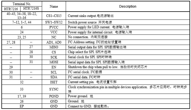 HTR7216(S)的工作電壓在2.7V到5.5V之間,并且關斷電流和工作電流都非常小。HTR7216支持QFN5×5-44L封裝,可在2.7V到 5.5V和-40°C to +125°C下工作。