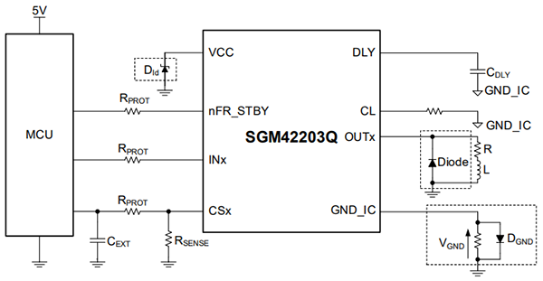 SGM42203Q 采用符合環(huán)保理念的 TSSOP-16A(帶裸露焊盤)綠色封裝,其雙通道架構(gòu)可提供 3.5A(單通道)或每通道 2.5A(雙通道)的持續(xù)負(fù)載驅(qū)動(dòng)能力。器件還集成了完善的故障檢測(cè)機(jī)制,包括開路負(fù)載檢測(cè)、短路至地保護(hù)、負(fù)電壓鉗位等,并特別針對(duì)汽車電子環(huán)境設(shè)計(jì)了系統(tǒng)級(jí)保護(hù)功能,如電源異常處理(欠壓關(guān)斷/過壓鉗位)、接地丟失保護(hù)以及電池?cái)嚯姳Wo(hù)。兼容 3V/5V 邏輯電平輸入的特性使其能靈活適配各類汽車電子控制系統(tǒng),是滿足嚴(yán)苛汽車應(yīng)用要求的理想解決方案。