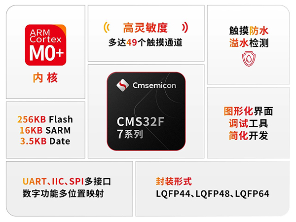 CMS32F759/737系列定位“大資源、高性能、高可靠性”,芯片集成多種資源,有助于降低系統(tǒng)設(shè)計(jì)成本,其發(fā)布標(biāo)志著中微半導(dǎo)在32位觸控技術(shù)領(lǐng)域的重大突破。