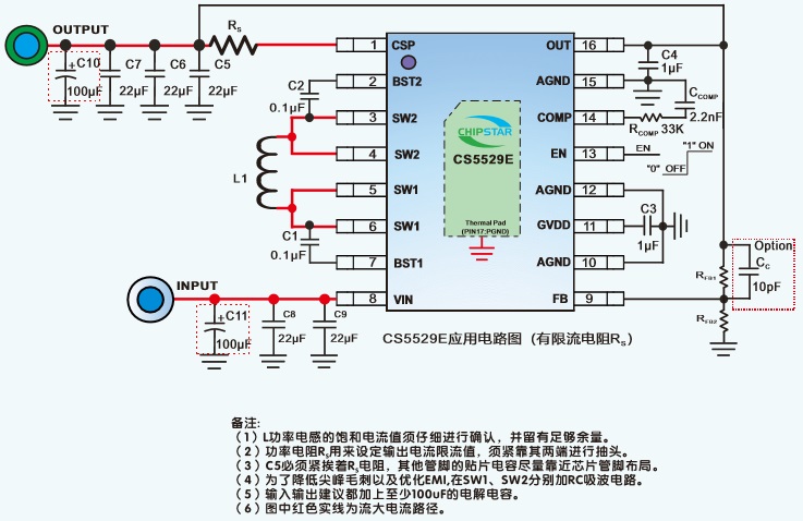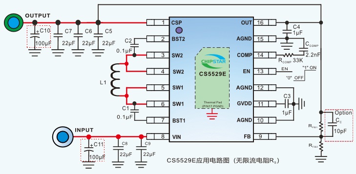CS5529E的輸入電壓為2.8V-18V,提供可調(diào)輸出電壓為1V-18V .CS5529E可以通過調(diào)整兩個外加電阻來設(shè)定輸出電壓.CS5529E同樣也適用于1-4節(jié)鋰電池的應(yīng)用場景,可以有效的延長電池的使用時間。