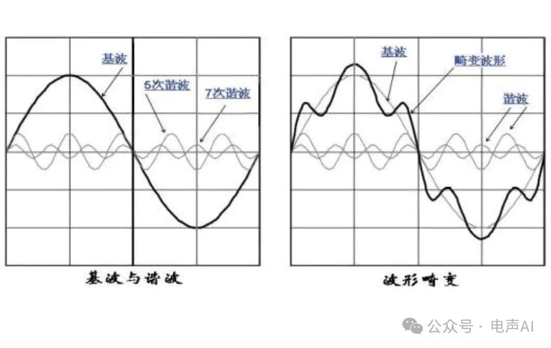 簡單來說,比如原始信號是標準的正弦波(只有基波),經(jīng)過存在失真的設備后,波形會變得“變形”,這些變形的部分就是諧波的影響。
