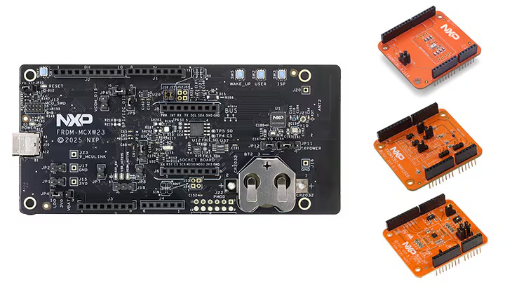 MCX W23 FRDM平臺不僅以核心芯片為基礎(chǔ),更圍繞FRDM-MCXW23開發(fā)板構(gòu)建了一個可堆疊、模塊化的生態(tài)合作體系。該板集成三軸加速度傳感器FXLS8974CF和溫度傳感器P3T1755DP,配備完整的Arduino與Mikrobus™擴展接頭,并支持多種可堆疊傳感器板,包括磁開關(guān)傳感器NMH1000、壓力/高度計傳感器MPL3115A2S等。此外,還可通過MCX W23 Click板增加對Bluetooth LE 5.3連接的支持。這一系列組件協(xié)同運作,使開發(fā)人員能夠快速構(gòu)建原型并測試多種微型感測應用,涵蓋智能電表、智能家居設(shè)備、可穿戴設(shè)備、資產(chǎn)追蹤器、醫(yī)療貼片及工業(yè)監(jiān)測系統(tǒng)等多種場景。