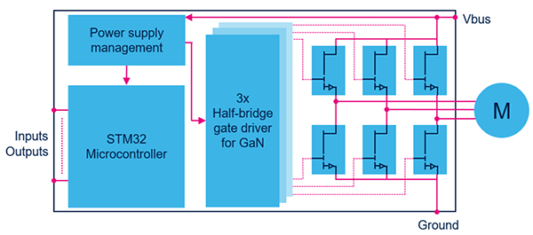 圖1. 基于 GaN 晶體管的逆變器的簡(jiǎn)化框圖
