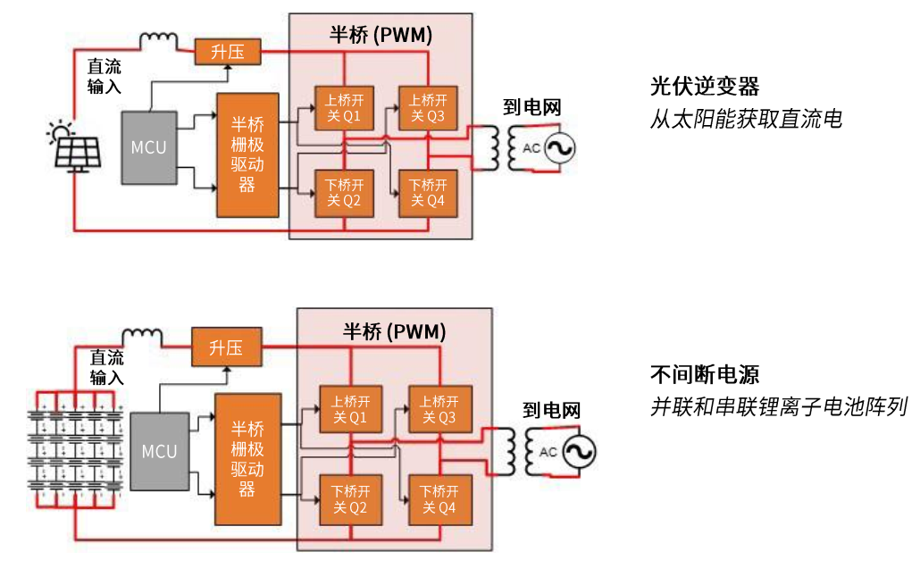 這里是一些常見的應(yīng)用和框圖元素。 它們都使用半橋?qū)⒔涣麟娸斔偷诫娋W(wǎng)。
