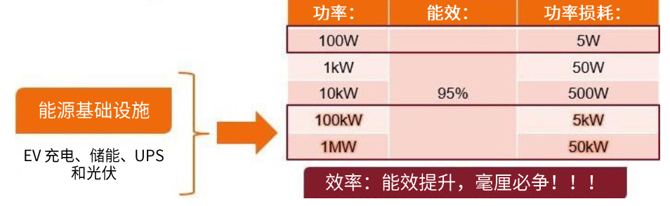 對(duì)于傳統(tǒng)的小功率產(chǎn)品 (~100 W), 95% 的效率是可以接受的。對(duì)于使用數(shù)百千瓦或兆瓦的高功率應(yīng)用而言 , 管理功耗是一項(xiàng)更為復(fù)雜的設(shè)計(jì)工作, 因?yàn)樾实拿壳Х种欢己苤匾?/font>