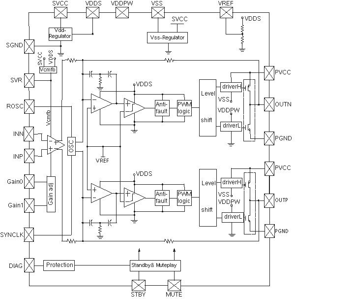 恒定4.8W/2.5V-5.5V(內(nèi)置自適應(yīng)Charge Pump模塊)/4Ω |