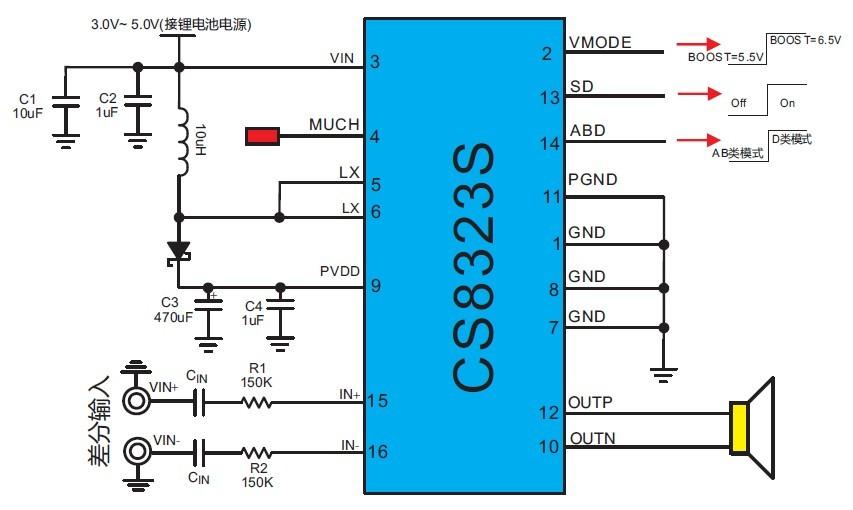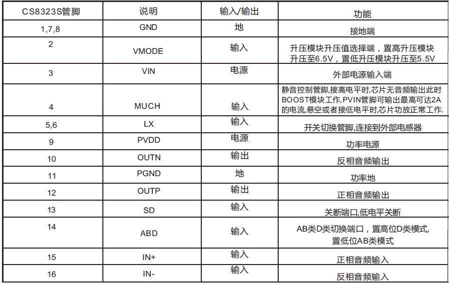 5W/2.7V-5.5V(內(nèi)置升壓模塊)/4Ω |