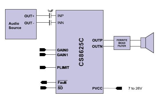 可使用單面PCB、免濾波、30W單聲道D類音頻功放IC,管腳兼容CS8622 |