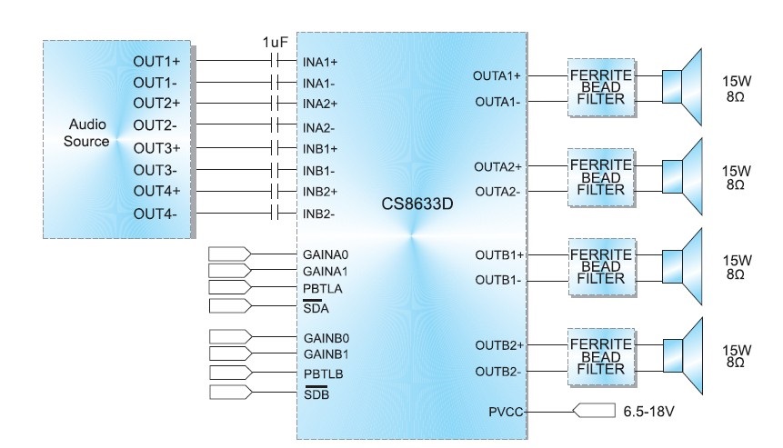 可使用單面PCB、免濾波、30W單聲道D類音頻功放IC,管腳兼容CS8622 |