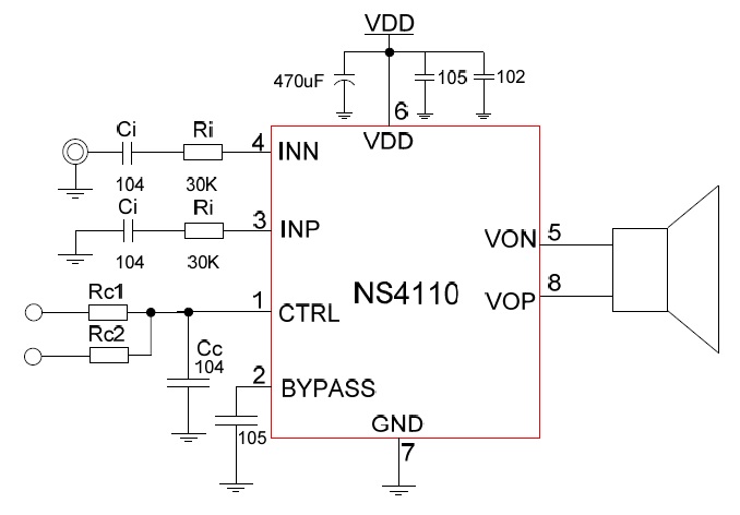 NS4110(寬電壓5V-18V AB/D類雙模、20W單聲道音頻功放IC) |