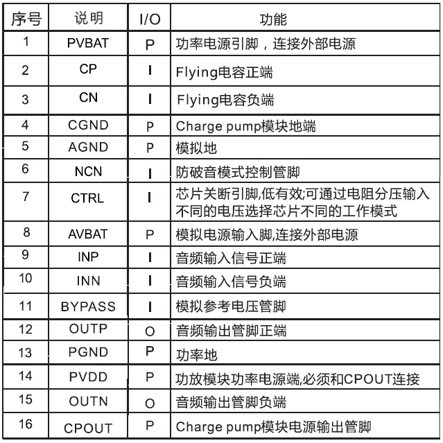 恒定4.8W/2.5V-5.5V(內(nèi)置自適應(yīng)Charge Pump模塊)/4Ω |