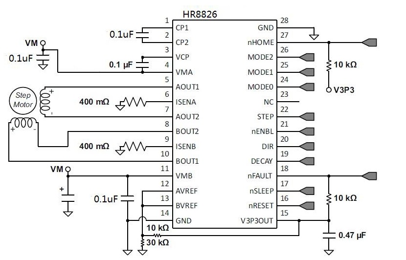 HR8826是一種內(nèi)置步進(jìn)表的集成微步進(jìn)電機(jī)驅(qū)動(dòng)器,為打印機(jī)、掃描儀和其它自動(dòng)化設(shè)備提供解決方案。其設(shè)計(jì)為能使雙極步進(jìn)電機(jī)以全、半、1/4、1/8、1/16、1/32步進(jìn)模式工作。步進(jìn)模式由邏輯輸入MODEx選擇。輸出驅(qū)動(dòng)能力達(dá)到38V和±3A。HR8826的衰減模式可編程。 |
