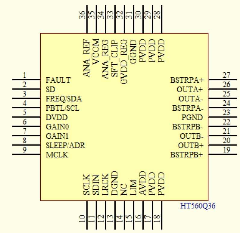 HT560(30W立體聲/75W單聲道I2S數(shù)字輸入D類音頻功放IC) |
