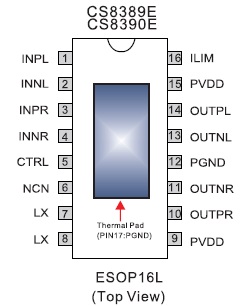 CS8389E/CS8390E提供了纖小的的ESOP16L封裝形式供客戶選擇,其額定的工作溫度范圍為-40℃至85℃。