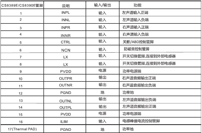 當(dāng)前位置:首頁->產(chǎn)品展示->功放IC->CS8389(4種防破音可選、AB/D切換功能、4.8W立體聲音頻功放IC) |