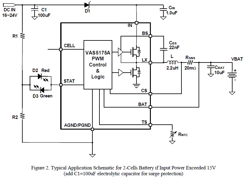 VAS5176 是一款8.5V-24V 輸入,高度集成的開關(guān)型鋰離子/聚合物電池充電管理芯片, 以高精度調(diào)節(jié)2A充電電流,和電池電壓。 |