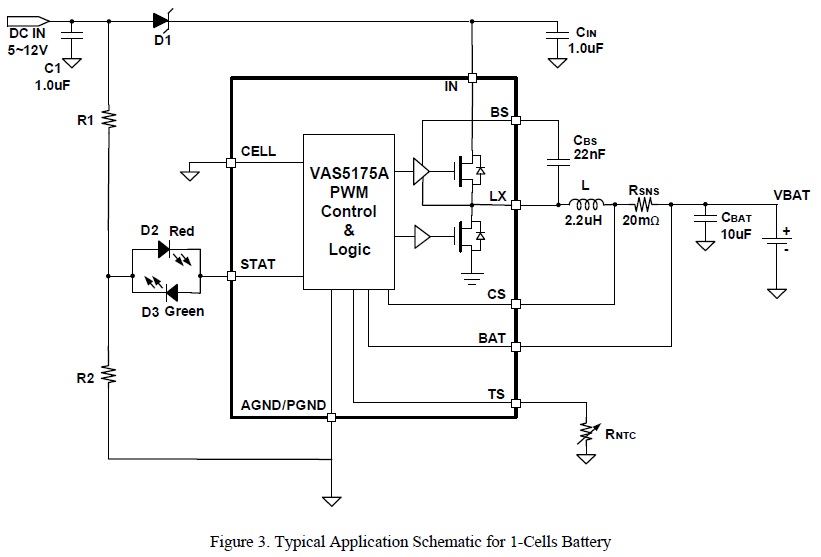VAS5175A 是一款5V-24V輸入,高度集成的開關(guān)型鋰離子/聚合物電池充電芯片, 以高精度調(diào)節(jié)2A充電電流,和電池電壓。它密切監(jiān)測電池組的溫度只在設置安全溫度范圍下允許充電,還提供電池檢測、預充電調(diào)節(jié)、充電飽充和充電狀態(tài)指示等功能。 |