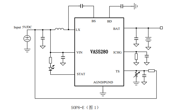 VAS5280(5V USB輸入、同步升壓兩節(jié)鋰電充電管理IC) |