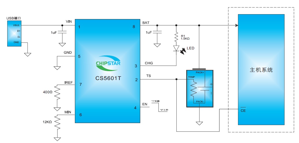 本。CS5256E轉(zhuǎn)換器具有2A的充電電流能力,充電電流可以通過(guò)外部電阻靈活可調(diào), 充電效率可以達(dá)到