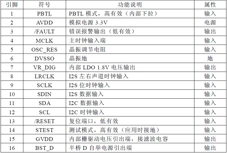 2×26W立體聲/52W單聲道、內(nèi)置DSP虛擬低音等多種音頻處理效果、數(shù)字輸入音頻功放芯片 |