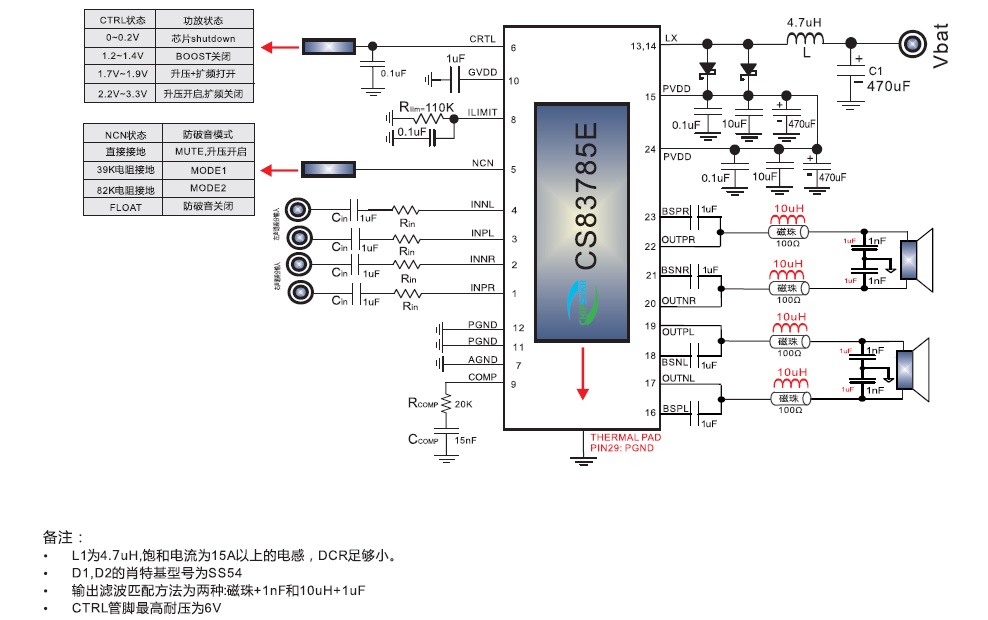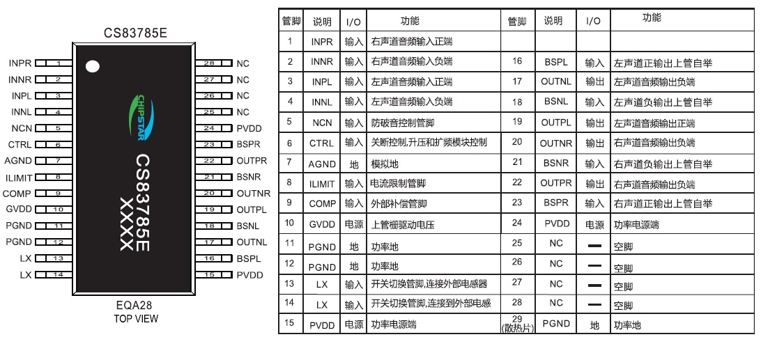 CS83785(單節(jié)鋰電池內(nèi)置升壓2x10W雙聲道D類音頻功放IC) |