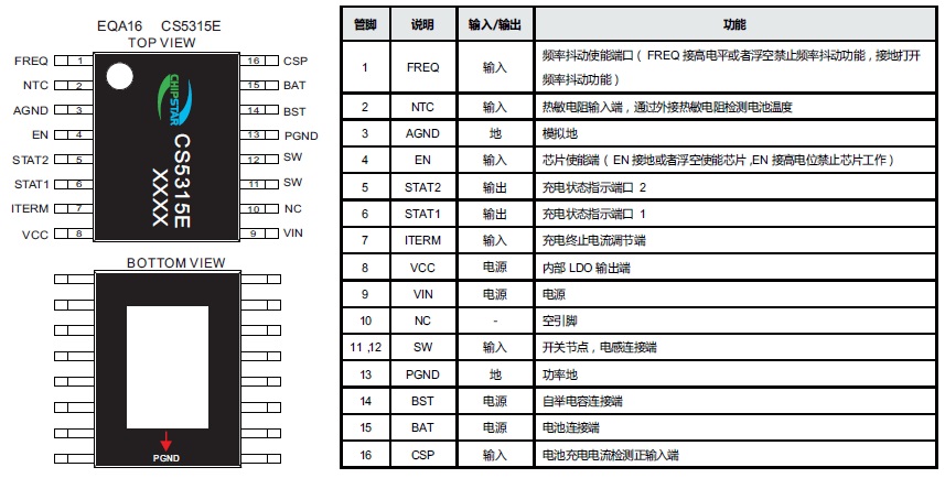 CS5363E是一款20V耐壓,1~4節(jié)鋰電池或1~5節(jié)磷酸鐵鋰電池異步降壓型充電管理IC。 集成功率MOS, 具有最大4A的充電電流能力,充電電流可以通過外部電阻靈活可調。恒壓充電電壓由外部電阻分壓網絡設置,實現(xiàn)對多類型多節(jié)電池的充電管理。 |