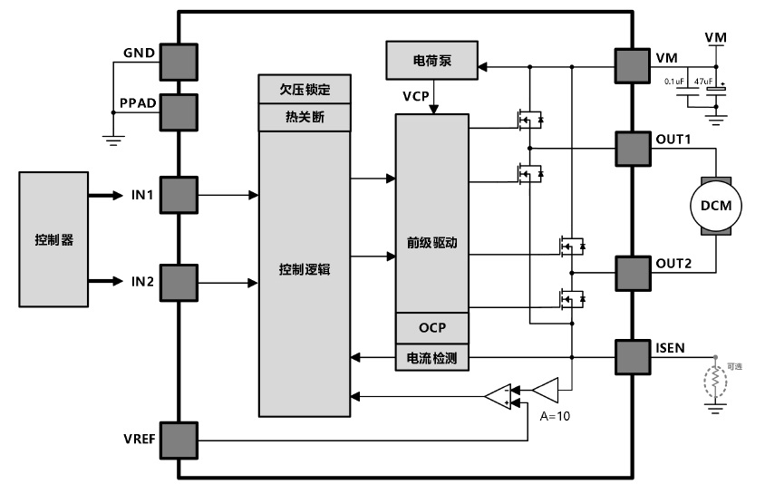 低電壓?jiǎn)瓮ǖ繦橋電機(jī)驅(qū)動(dòng)芯片 |