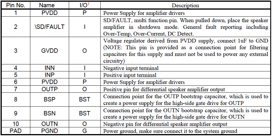 擴頻功能、低空載電流、40倍增益、免濾波、2X23W/33W(PBTL) D類音頻放大器 |