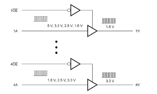 單電源四通道緩沖轉(zhuǎn)換門器件,具有三態(tài)CMOS輸出的電平轉(zhuǎn)換器 |