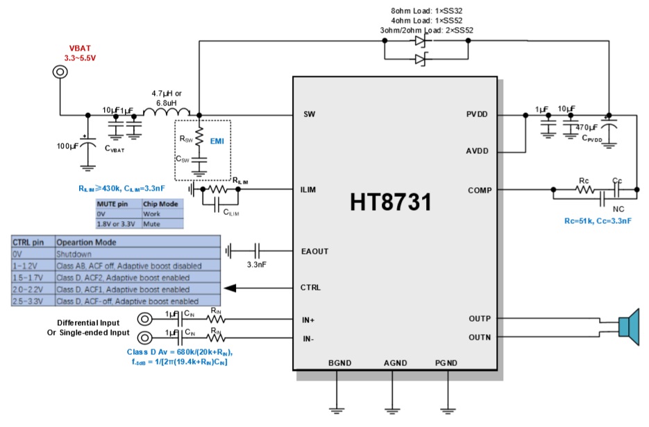 內(nèi)置自適應(yīng)同步升壓和防破音功能的3W全頻段D類及AB類音頻功率放大器 |