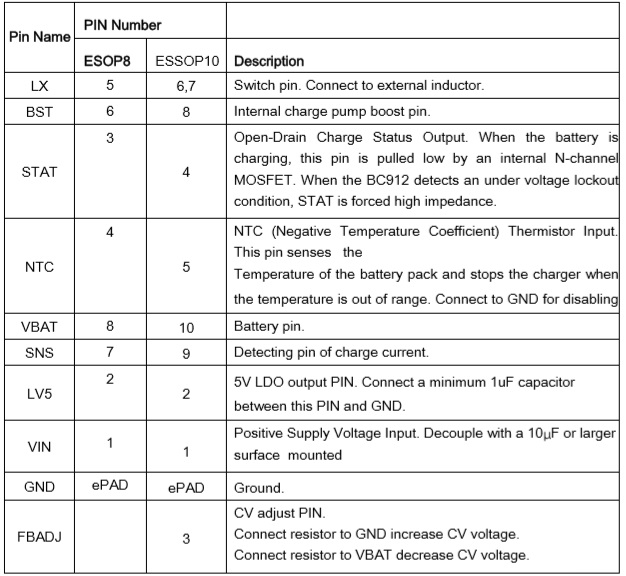 BC911是一款4V-18V寬電壓輸入,支持單節(jié)鋰電池或磷酸鐵鋰電池的降壓充電管理IC。集成功率MOS,采用同步開關(guān)架構(gòu),使其在應(yīng)用時僅需極少的外圍器件, 可有效減少整體方案尺寸,降低BOM成本。BC912具有3A的充電電流能力,充電電流可以通過外部電阻靈活可調(diào), 充電效率可以達(dá)到95%以上;恒壓充電電壓可調(diào)(電壓點(diǎn)7.2V-9.4V可調(diào),僅限于DFN-10封裝),實(shí)現(xiàn)對多類型如二節(jié)鋰電池(8.4V/8.7V/8.8V)、二節(jié)磷酸鐵鋰電池(7.2V)的充電管理。 |