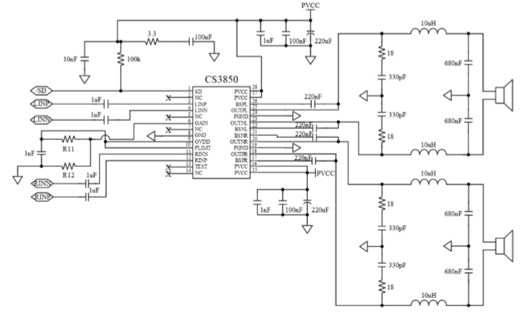 CS3850EO 是一款典型輸出功率為40W立體聲的D類音頻功率放大電路,適用于拉桿音箱、高級(jí)桌面音響等場(chǎng)合。
