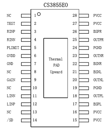 CS3855EO 是一款典型輸出功率為55W立體聲的D類音頻功率放大電路,適用于拉桿音箱、高級桌面音響等場合。