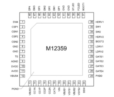 M12369 是一款面向大功率快充應用的電源管理 SOC,集成了微處理器、雙路降壓變換器、快充協(xié)議控制 器,支持 PD3.1、QC3.0、SCP、FCP、AFC、BC1.2 DCP 等全部主流快充協(xié)議,結合少量元件即可組成雙C 口的 140W大功率快充解決方案;輔以 DC-DC 芯片,還可擴展為3路獨立的C+C+AA多口大功率快充解決方案。