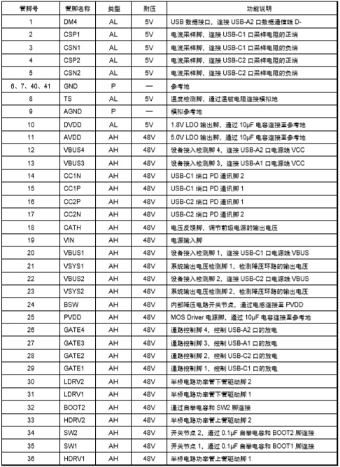 2-4節(jié)電池快充充電管理SOC ,內置PD3.0、PD2.0、QC3.0、QC2.0、BC1.2 DCP、UFCS等協(xié)議 |